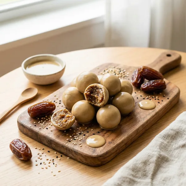 Naturally sweetened with dates and made creamy with tahini, these dairy-free protein bites are a wholesome, Middle Eastern-inspired treat. Packed with approximately 7 grams of protein per serving, they provide a satisfying boost to your day, supporting muscle recovery and sustained energy. The rich, nutty flavor of tahini perfectly complements the natural sweetness of dates, creating a harmonious balance of taste and texture—soft, chewy centers coated in a slightly crunchy exterior. With their wholesome ingredients and healthy fats, these bites make an excellent snack for post-workout recovery, meal prep, or a midday energy lift. They are entirely vegan-protein-balls.html" class="text-brand-600 hover:text-brand-700 font-semibold" title="Vegan Protein Balls">vegan and gluten-free, making them suitable for a variety of dietary preferences; you can also customize them with add-ins like chopped nuts or seeds for extra crunch. For best results, process the ingredients until smooth and firm, then refrigerate to achieve a perfect, cohesive texture. Enjoy these bites straight from the fridge for a cool, satisfying treat, or pack them in your bag for a portable, nutrient-dense snack that keeps you fueled and satisfied throughout the day. All nutrition data is verified using USDA FoodData Central for accuracy.